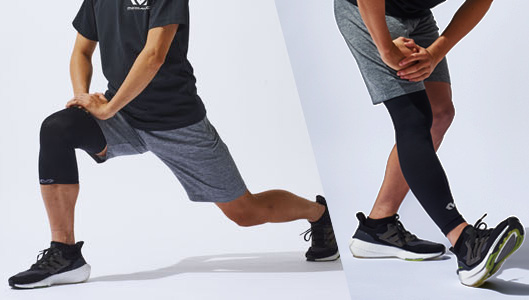「フルレッグ」は「ニー」と同じくヒザのサポートに加え、ふとももとふくらはぎをサポートできます。ヒザの曲げ伸ばしにはふとももの筋肉が使われることや、ふくらはぎの筋肉が疲労するとヒザにも負担がかかりやすくなることなどから、効果的なヒザの負担軽減のために、「脚全体」を一体的にサポートすることをおすすめします。もちろん「ニー」で不安なヒザのみをサポートすることも、良いコンディショニングの手段だと思います。