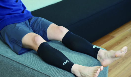 コンディショニングスリーブを着用することで、関節・筋肉にかかる負担を軽減したり、筋肉の疲労感の軽減をサポートしたりすることができます。ただし、長時間着用する際には着圧が苦しく感じたり、ずれやムレにより不快感を感じたりする場合があるので、2~3時間に1回程度サポーターを外したり着け直すなどして、装着部位をリラックスさせるようにしてください。