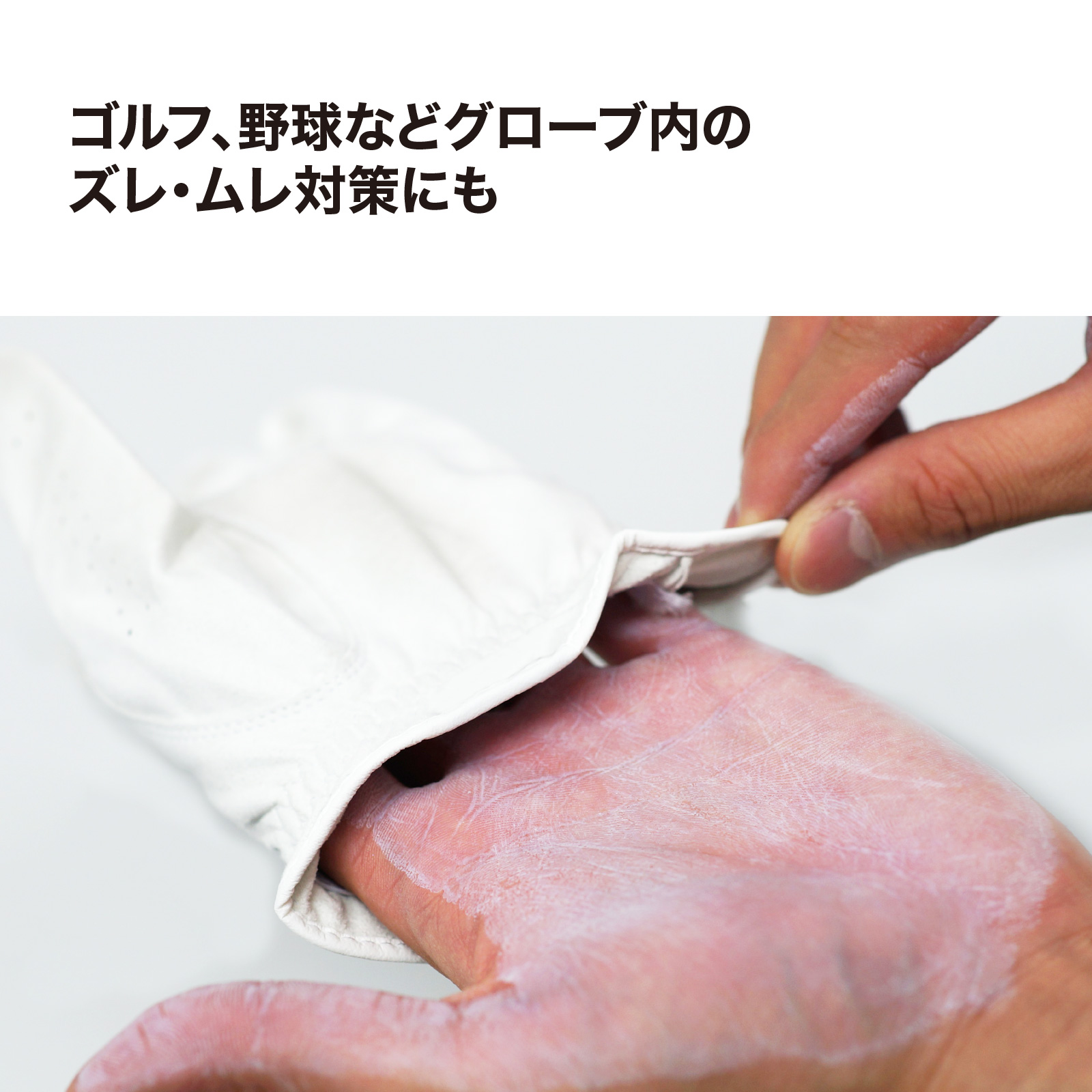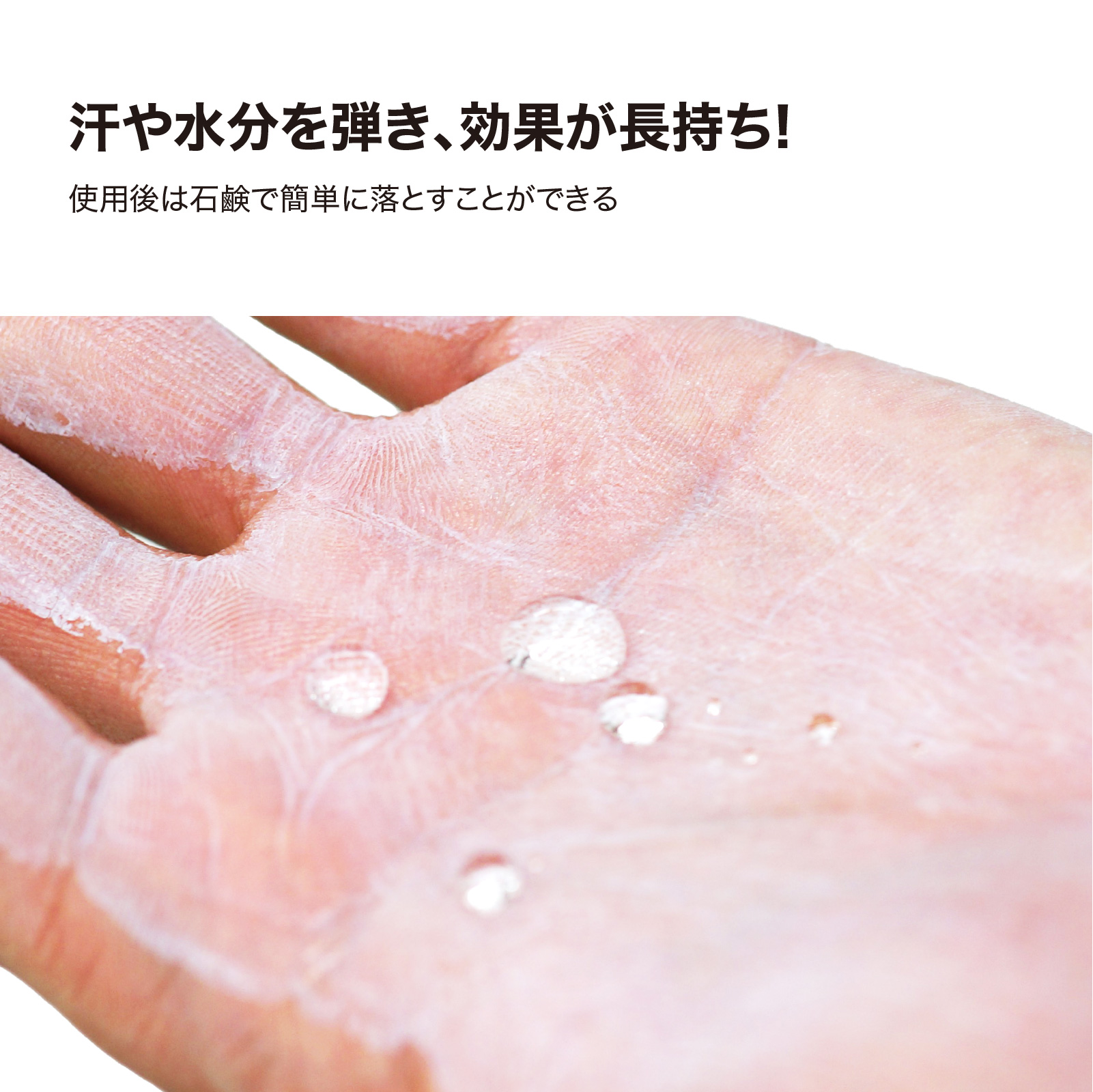 手のひらの汗や脂を素早く吸収し、表面に細かなサンドペーパー状の被膜を形成