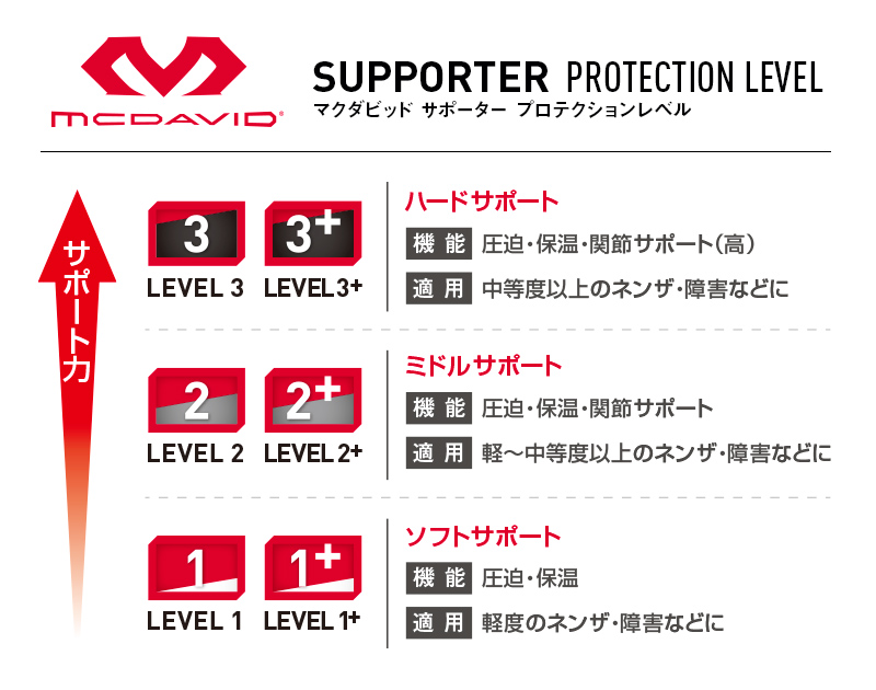 傷害の予防には、筋力や柔軟性を十分に高めておくことが大切です。サイズの合わない製品を使用しないで下さい。