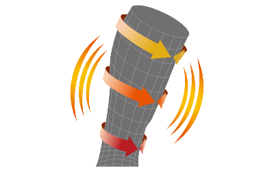 部位全体を包み込むように適圧でサポートし、運動時の筋肉のブレ(筋振動)を抑制し、ムダなエネルギー消費を低減。さらに動きの安定化、ケガ予防など、より良いコンディションの維持をサポート。