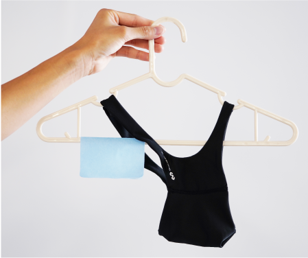 水気をとった後、マスクの形を整え、陰干しをする。マスク本体とフィルターを分けて干す。