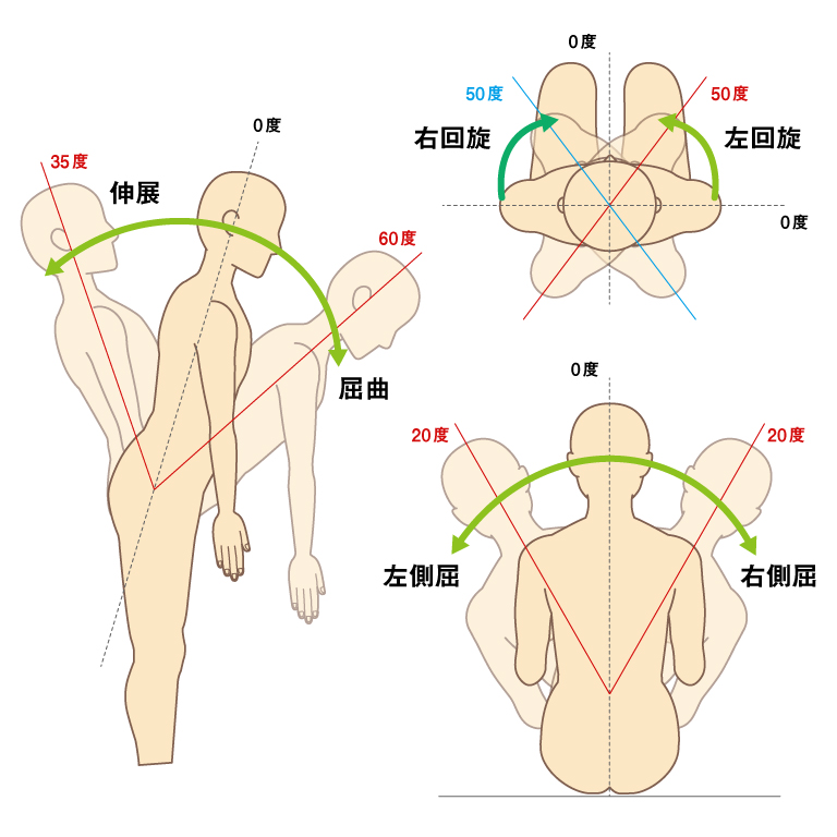 腰部を含む体幹部の運動は上下の椎体間にある関節で起こる比較的小さめの動きの組み合わせとなります。そのため、1つ1つの関節の可動域ではなく胸部(胸椎)と腰部(腰椎)の総合的な可動域を指標とすることが多くなっています。
