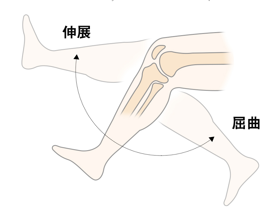 膝関節では屈曲と伸展が起こります。この動きは歩行、走行、跳躍など日常生活だけでなくスポーツ時に非常に重要な動作の1つです。ケガや慢性的な疲労が起こると、この可動域が狭くなることがあるため注意が必要となります。また、狭くなった可動域で運動を続けると大きなケガに繋がることもあります。
